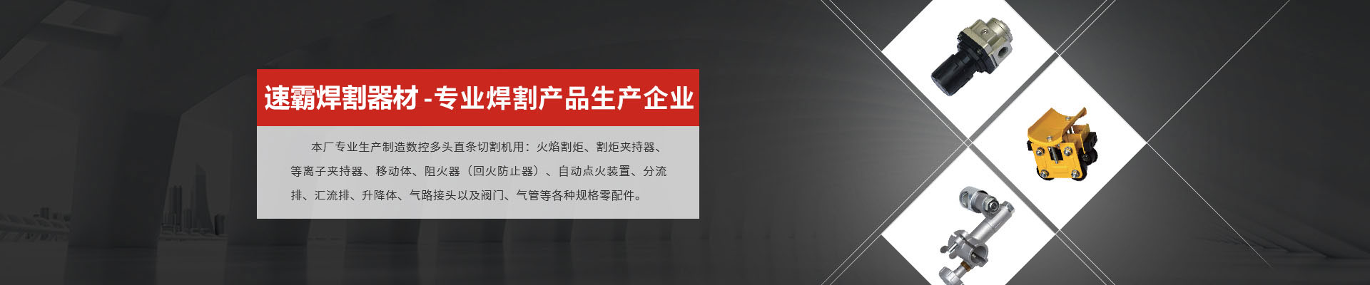 無錫市速霸焊割器材有限公司座落在美麗的太湖之濱-----被譽(yù)為“太湖明珠”的無錫。是一家現(xiàn)代化的企業(yè)。本廠專注于生產(chǎn)制造數(shù)控多頭直條切割機(jī)用:火焰割炬、割炬夾持器、等離子夾持器、移動(dòng)體、阻火器(回火防止器)、自動(dòng)點(diǎn)火裝置、分流排、匯流排、升降體、氣路接頭以及閥門、氣管等各種格零配件。